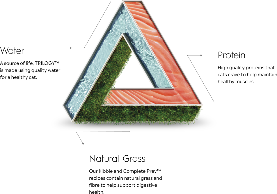 TRILOGY is the only cat brand focused on the triad of nutrition based on how cats actually eat - a combination of protein, cat grasses, and water.